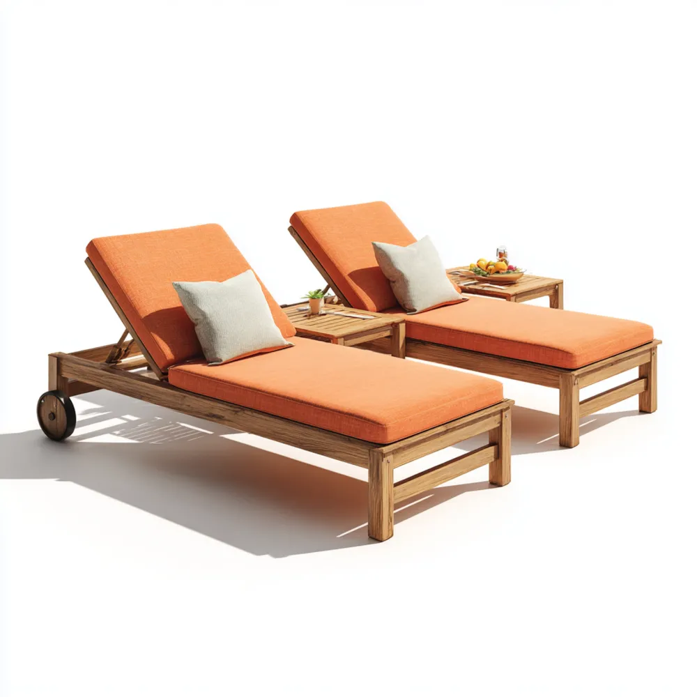 Verstellbares Gartenliege Set Holz 200x70x35 cm - Orange