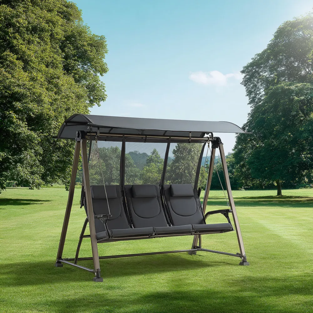 Funktionale HighlightsMit Platz für bis zu drei Personen eignet sich diese Schaukel perfekt für gesellige Runden und entspannte Freizeitmomente im Garten.